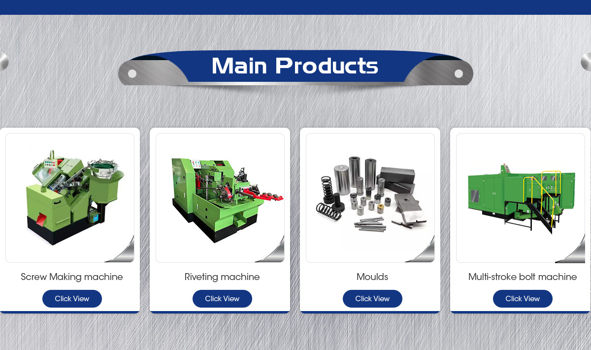 Productos principales:Moldes, máquina para hacer tornillos, máquina de remaches, máquina de pernos y tuercas, máquina de clavos